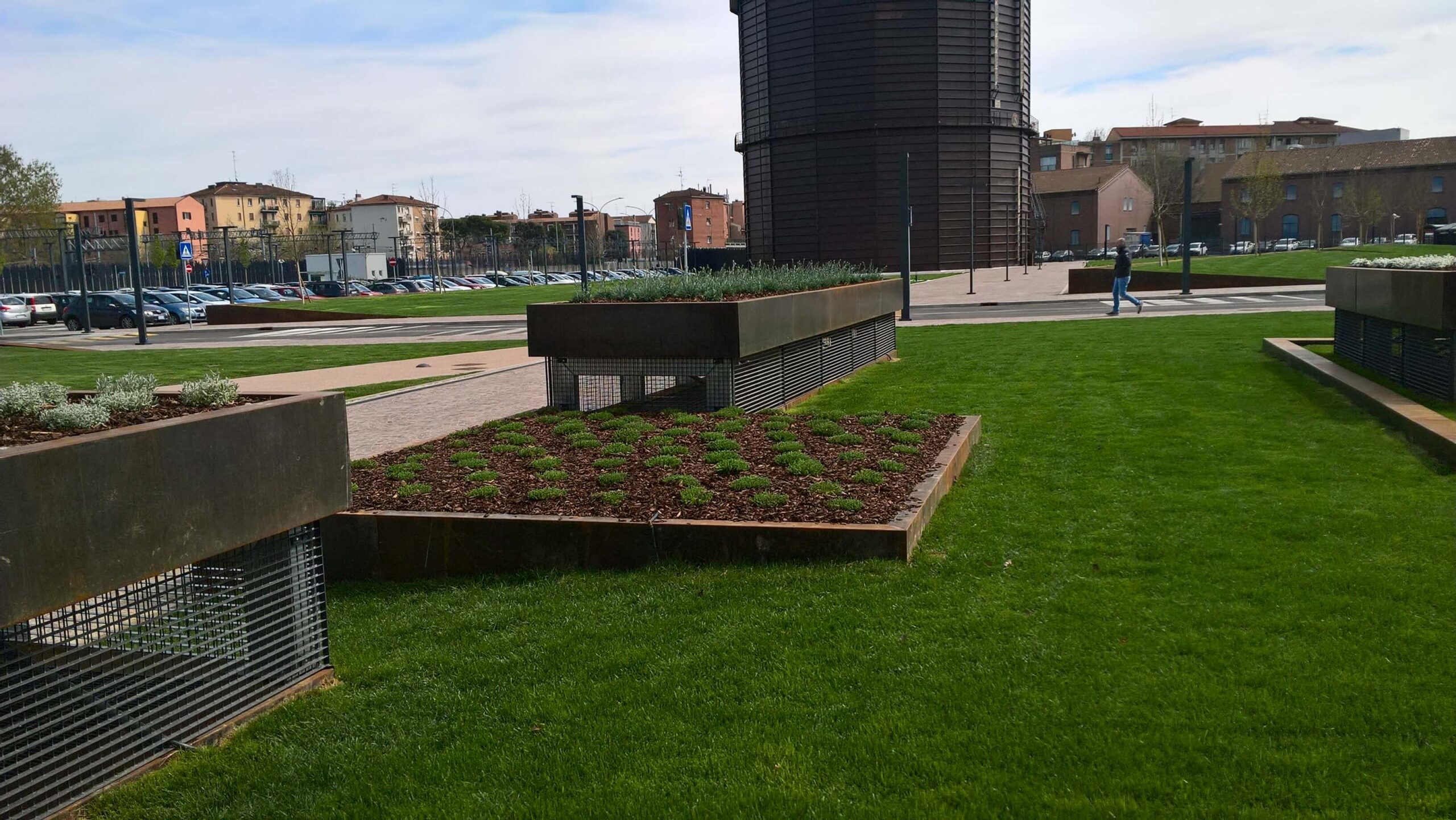 Le opere private hanno compreso la creazione di parcheggi pertinenziali per dipendenti e visitatori, la ristrutturazione e rifunzionalizzazione degli edifici esistenti, la bonifica dei terreni e la valorizzazione del Gasometro MAN, trasformato in punto di riferimento dell’area verde attrezzata.